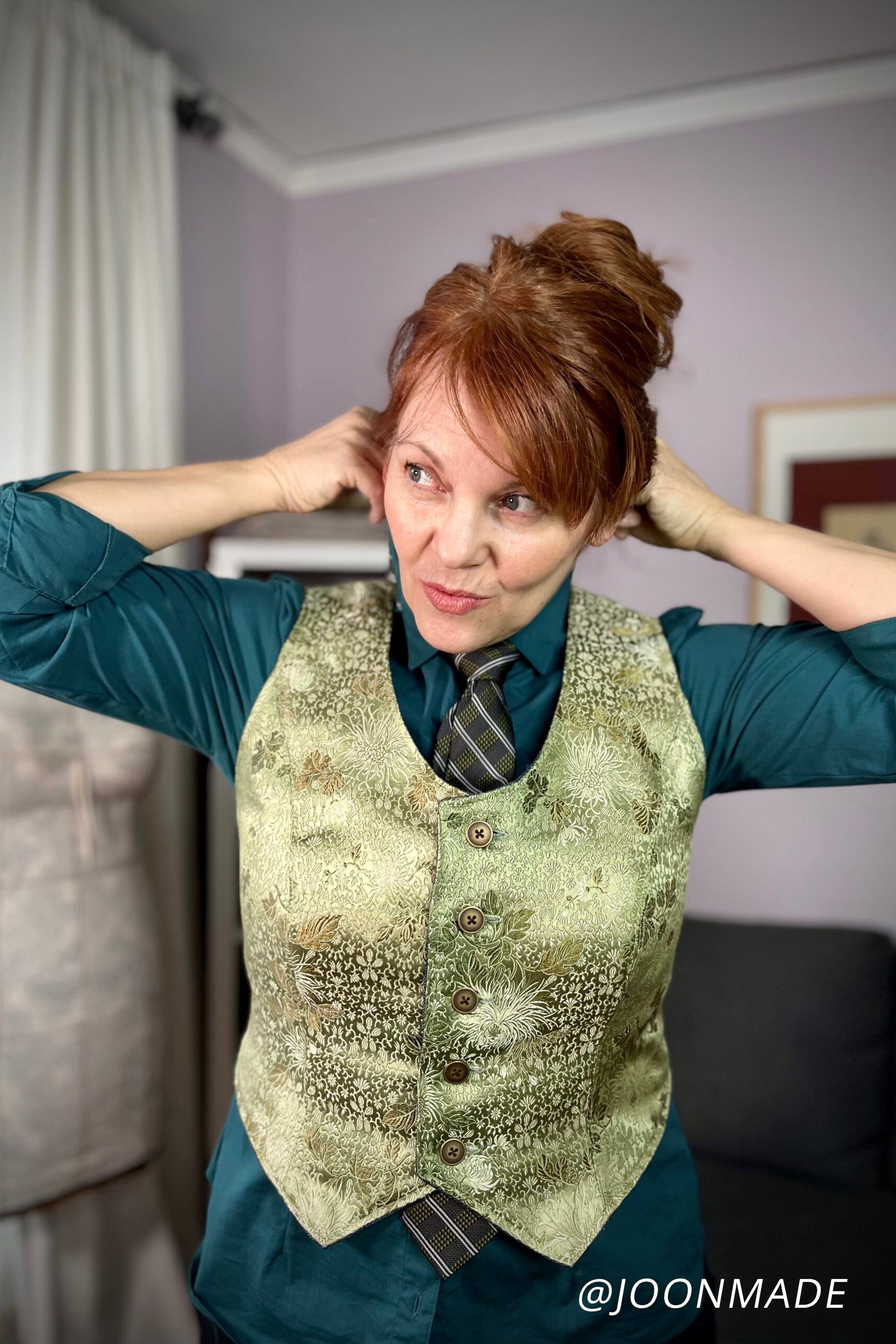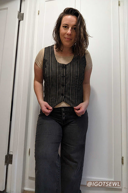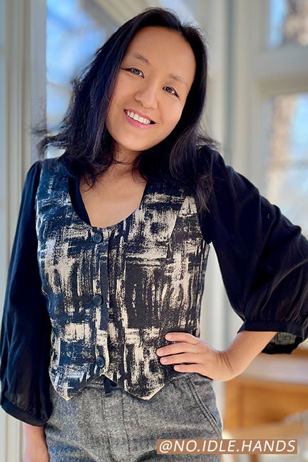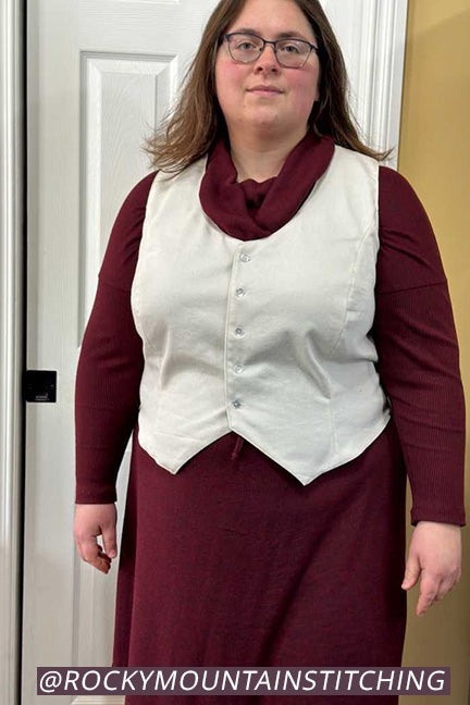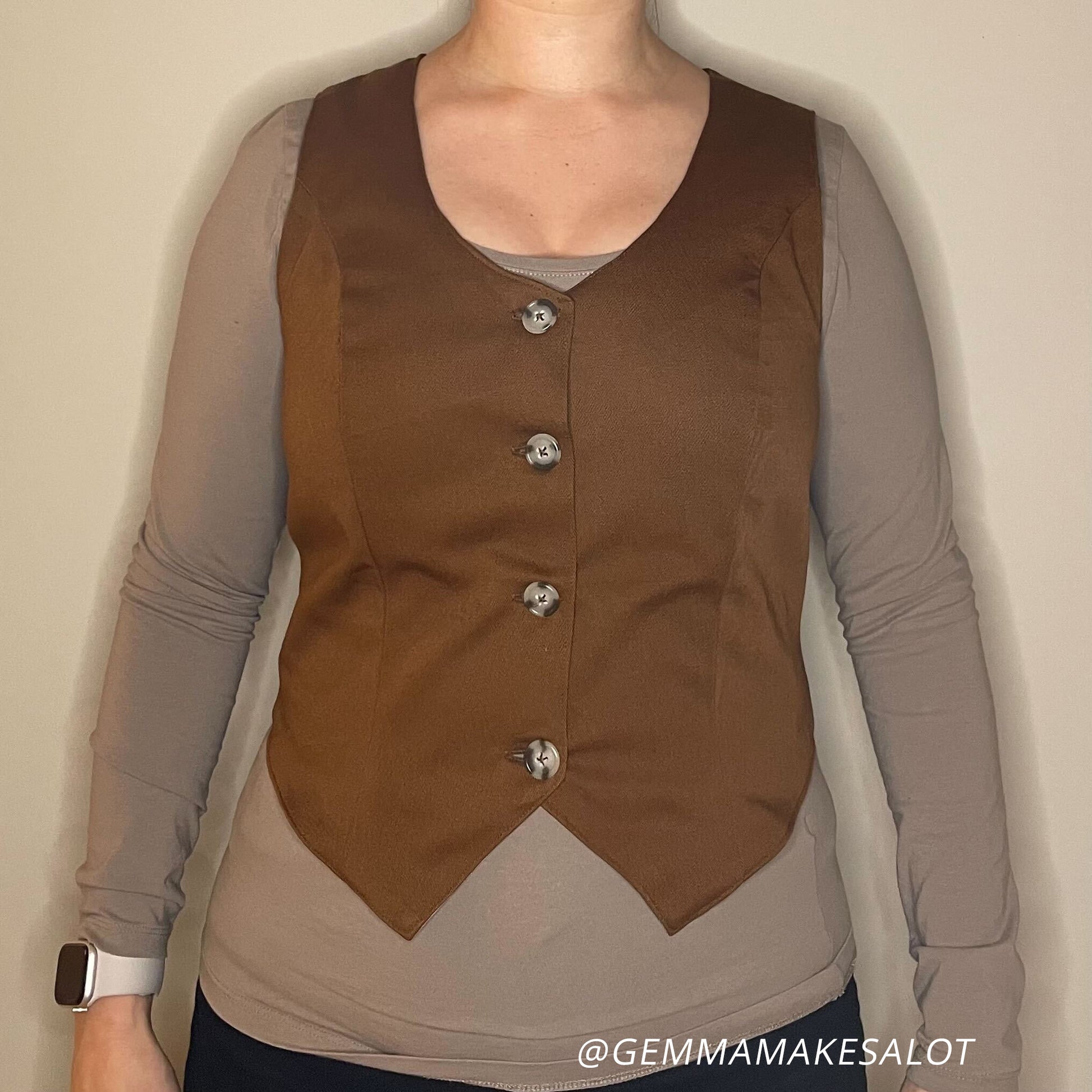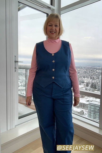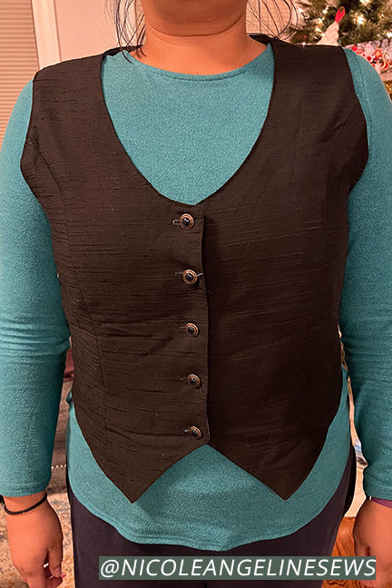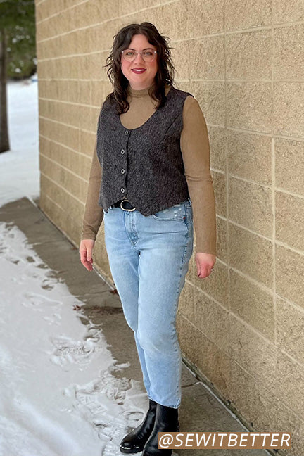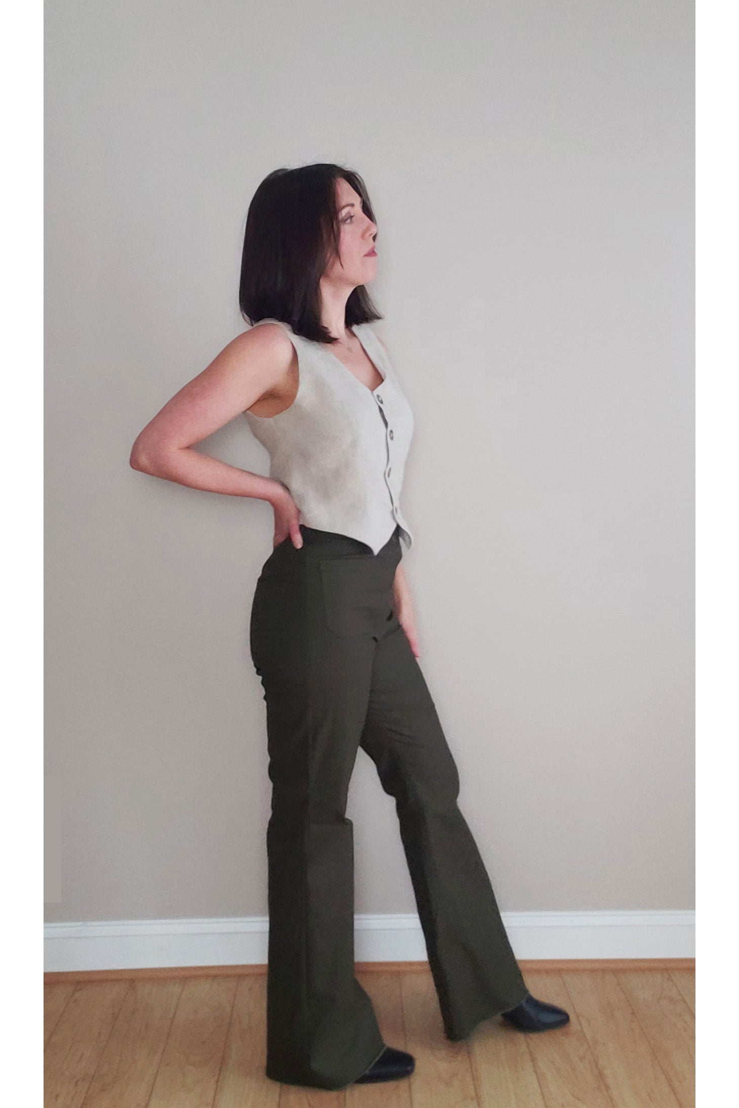 The Birch Vest is a lined waistcoat with princess seams, a deep scoop neckline, and a front button closure. A transitional wardrobe staple, Birch can be worn alone or layered with matching separates for a tailored or casual style.
