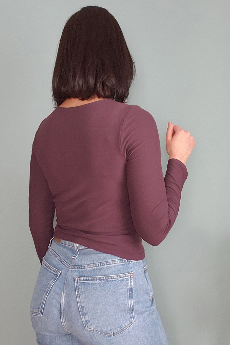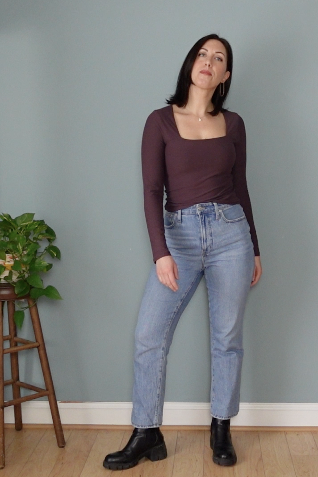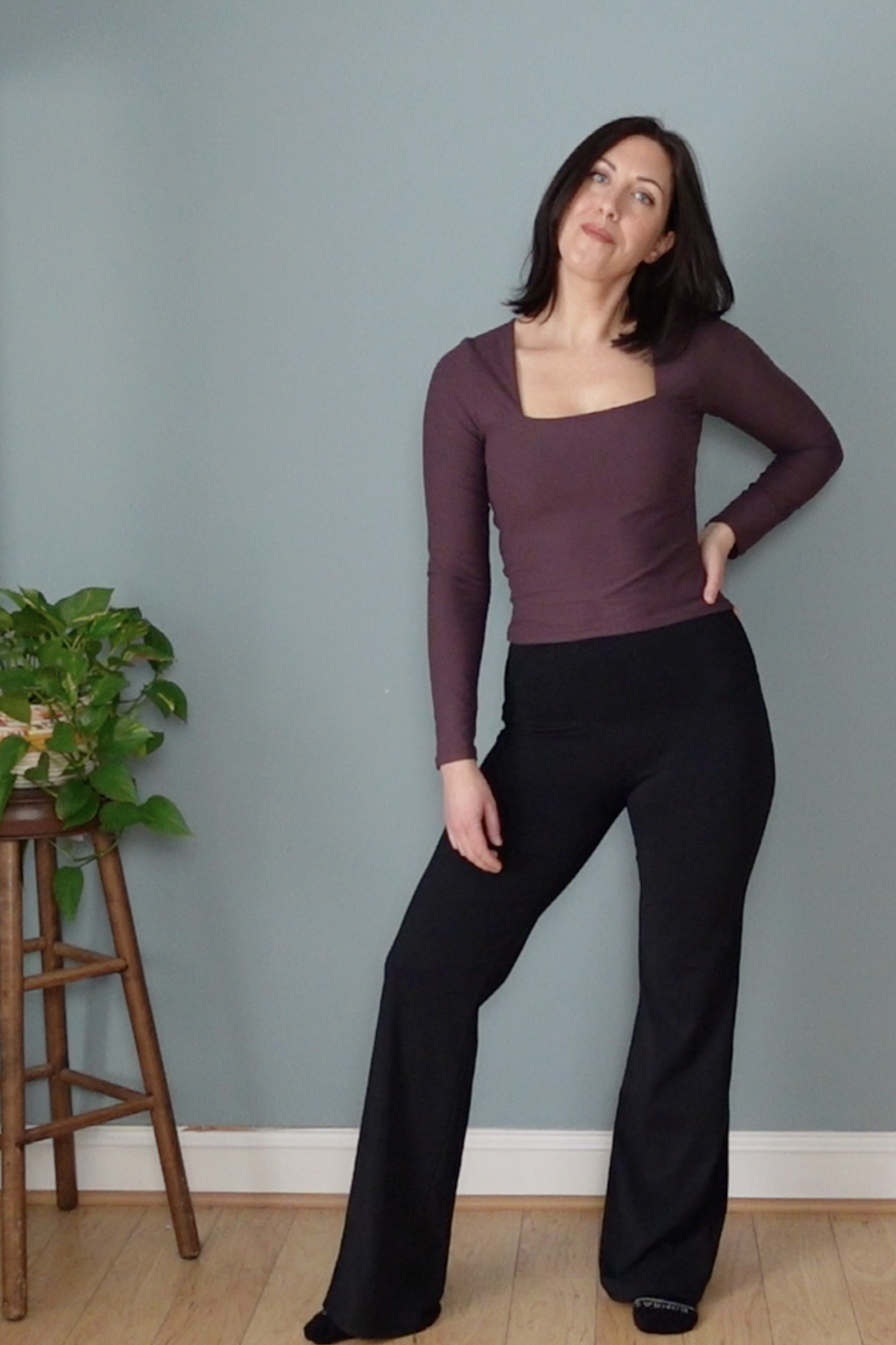 Say hello to your new favorite wear-with-everything tee. Brigit is fitted knit shirt with a plunging square neckline and the option of short or long sleeves. The bodice is partially lined with a clean finish along the neckline (no bindings), making this little wardrobe staple a simple sew. With its body-hugging silhouette and feminine neckline, Brigit offers a romantic spin on the basic tee.