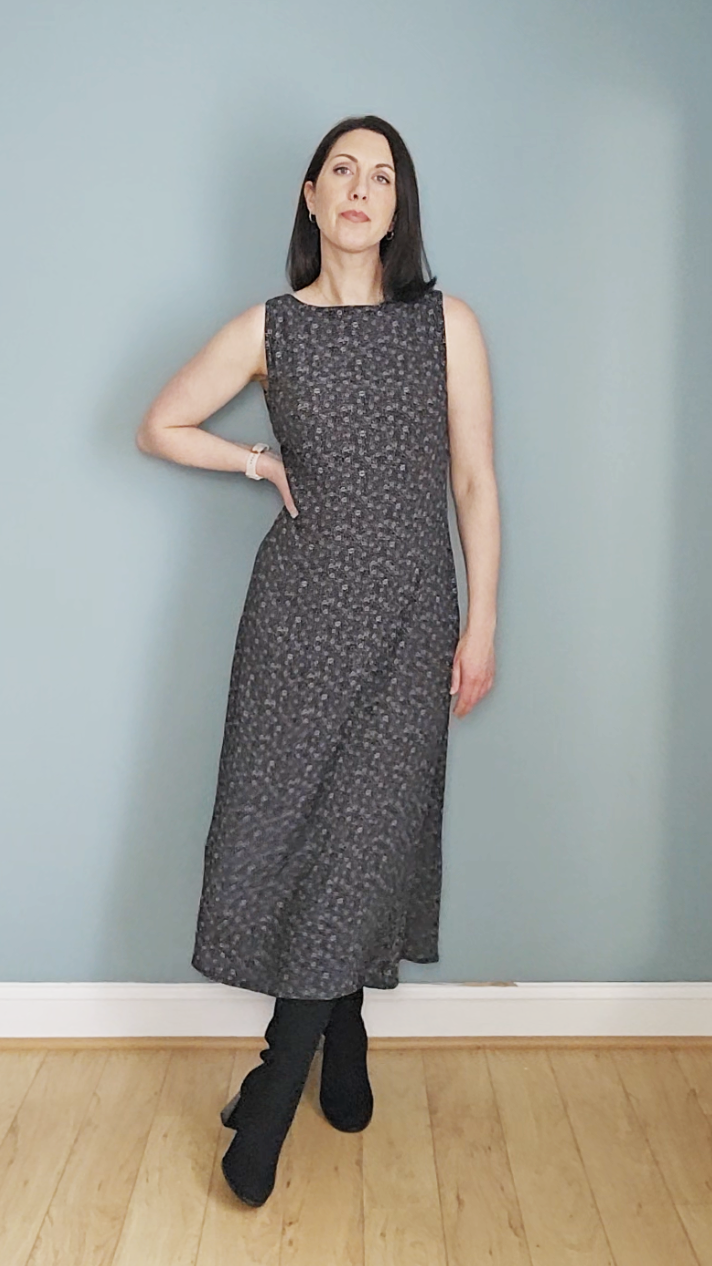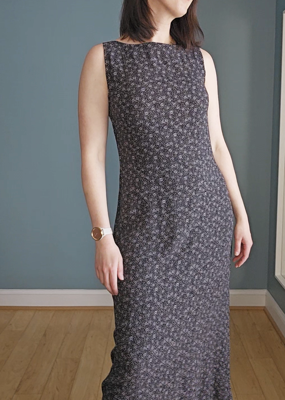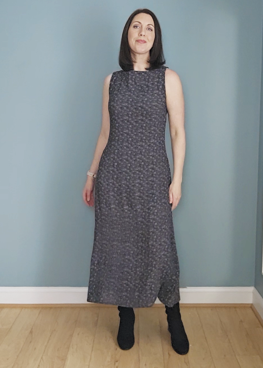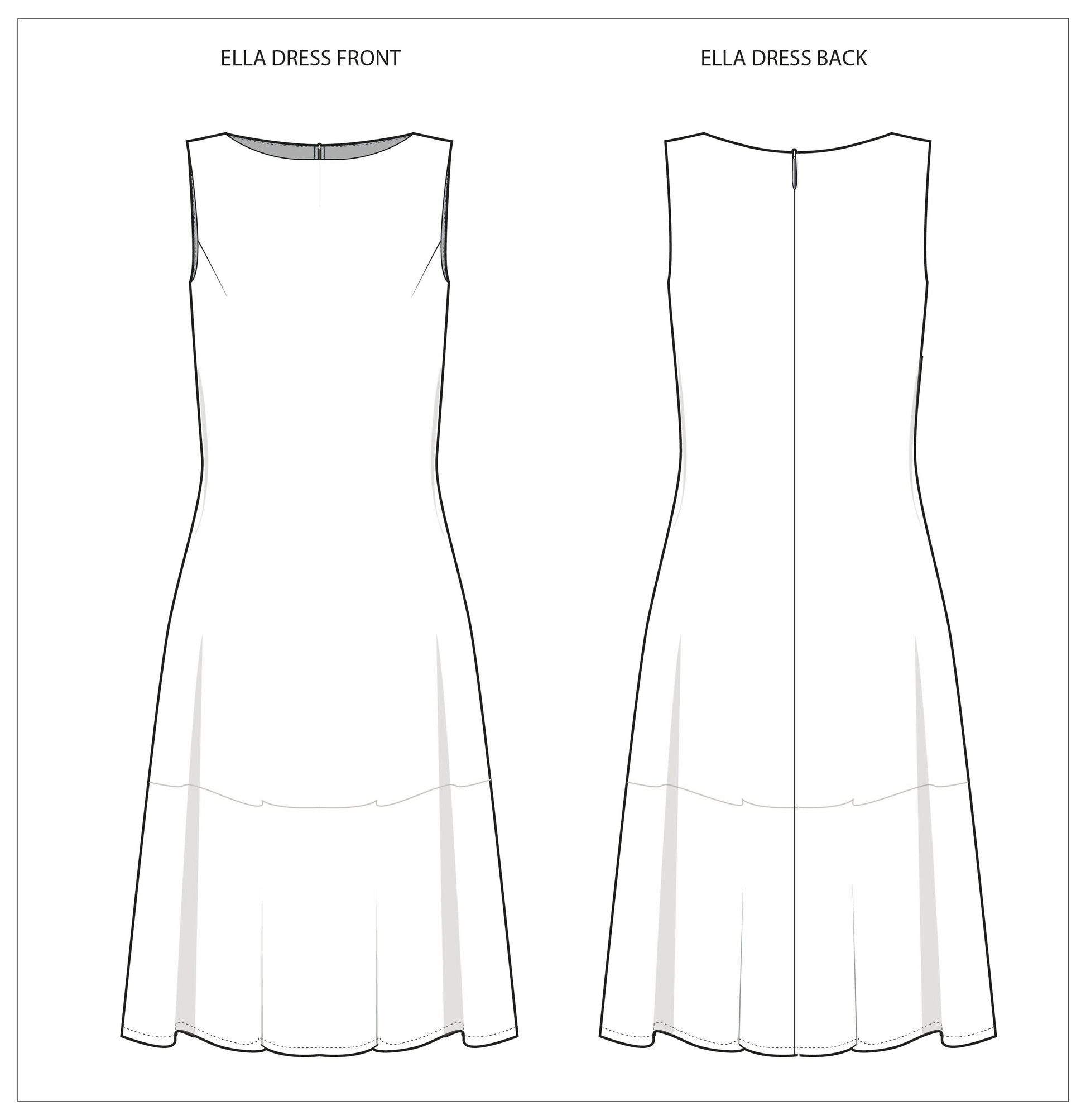 Ella is a sleeveless shift dress with a boat neckline and a center back invisible zip closure. The dress can be cut on the bias for a more fluid, body skimming drape. Or or cut on the straight grain to make this simple-to-sew basic your next wardrobe staple. The neckline and armholes are finished with facings.