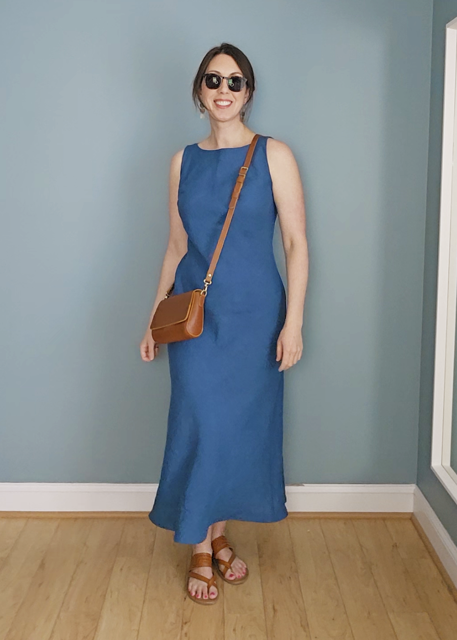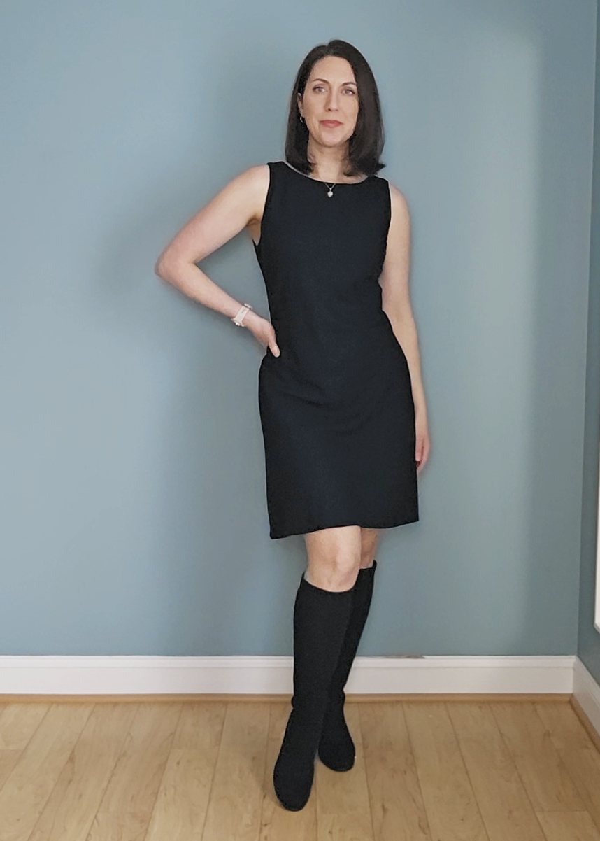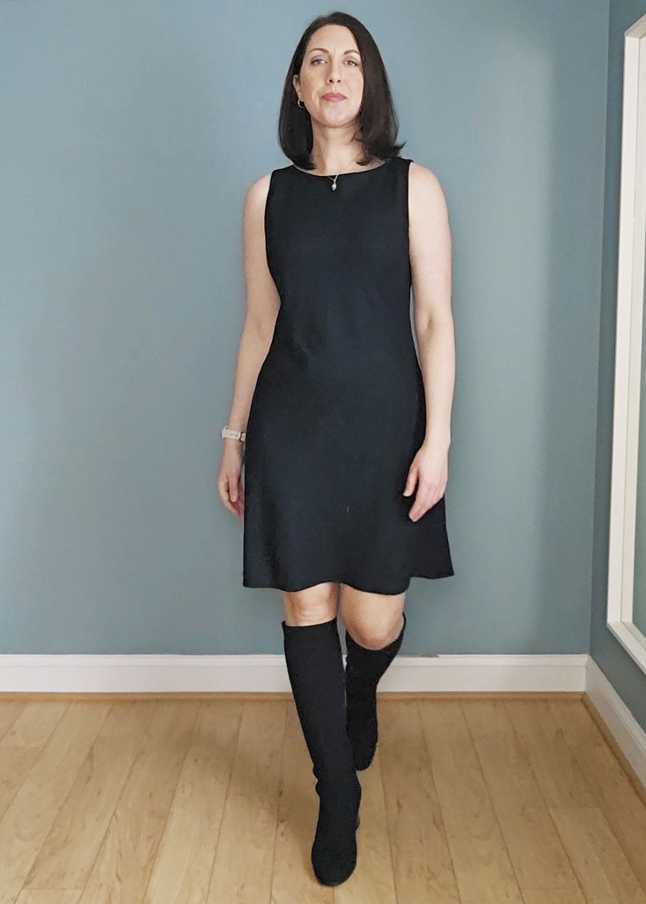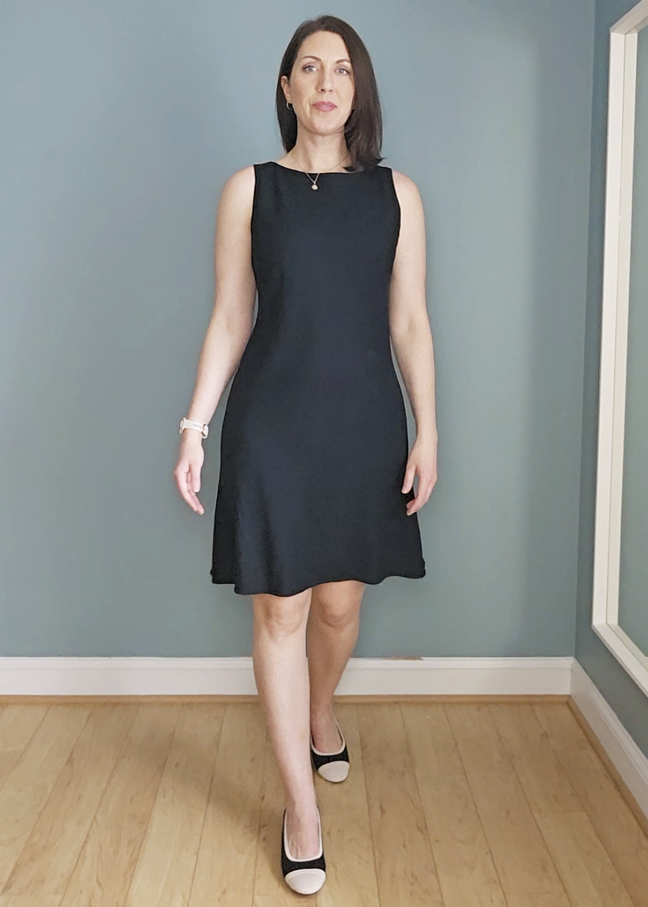 Ella is a sleeveless shift dress with a boat neckline and a center back invisible zip closure. The dress can be cut on the bias for a more fluid, body skimming drape. Or or cut on the straight grain to make this simple-to-sew basic your next wardrobe staple. The neckline and armholes are finished with facings.