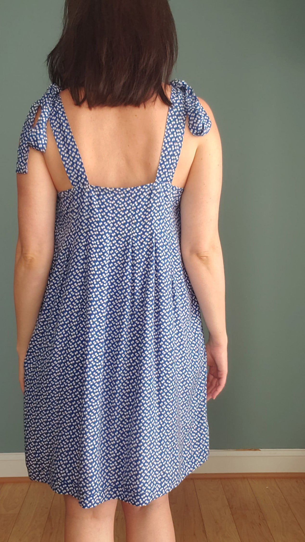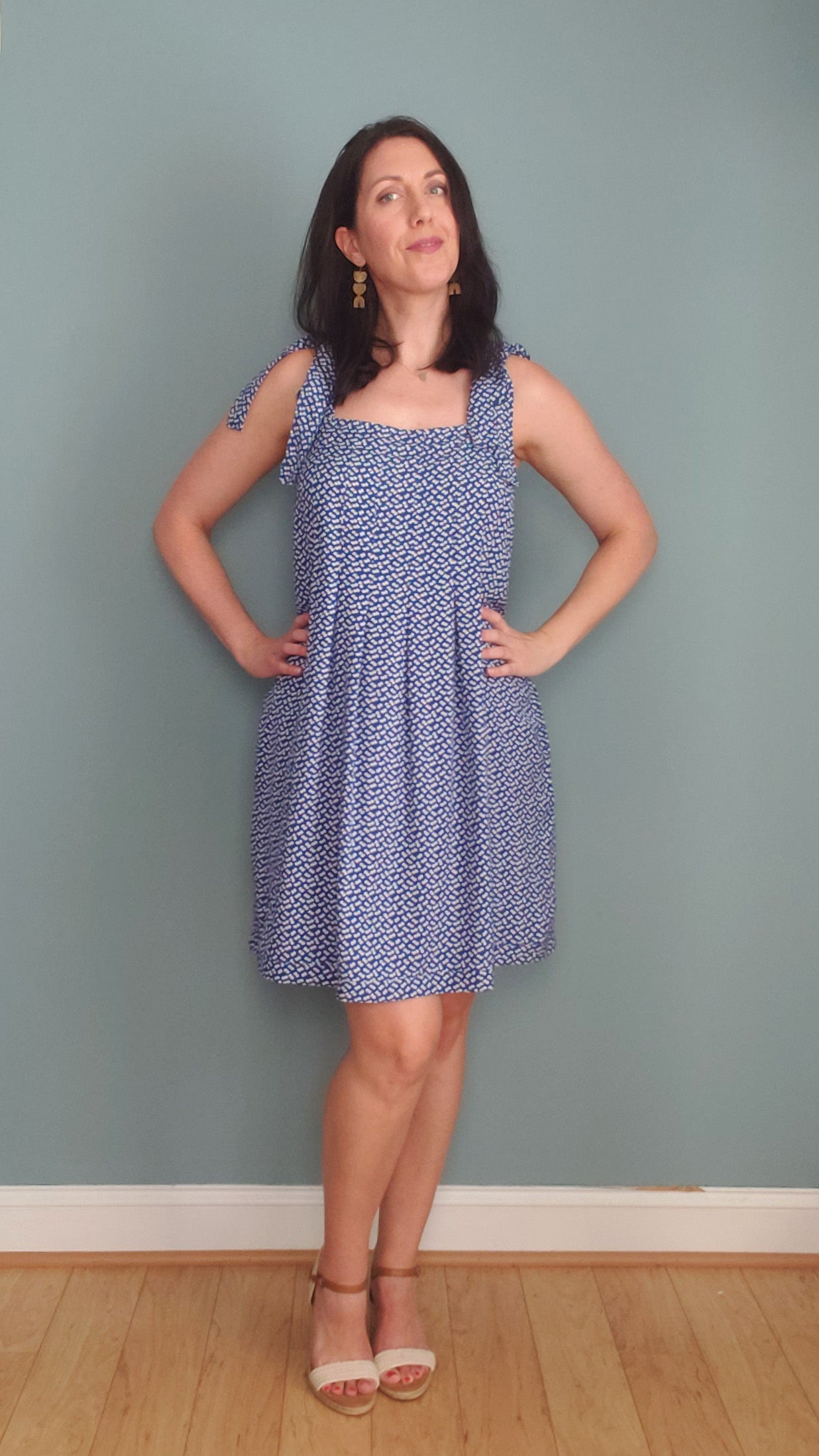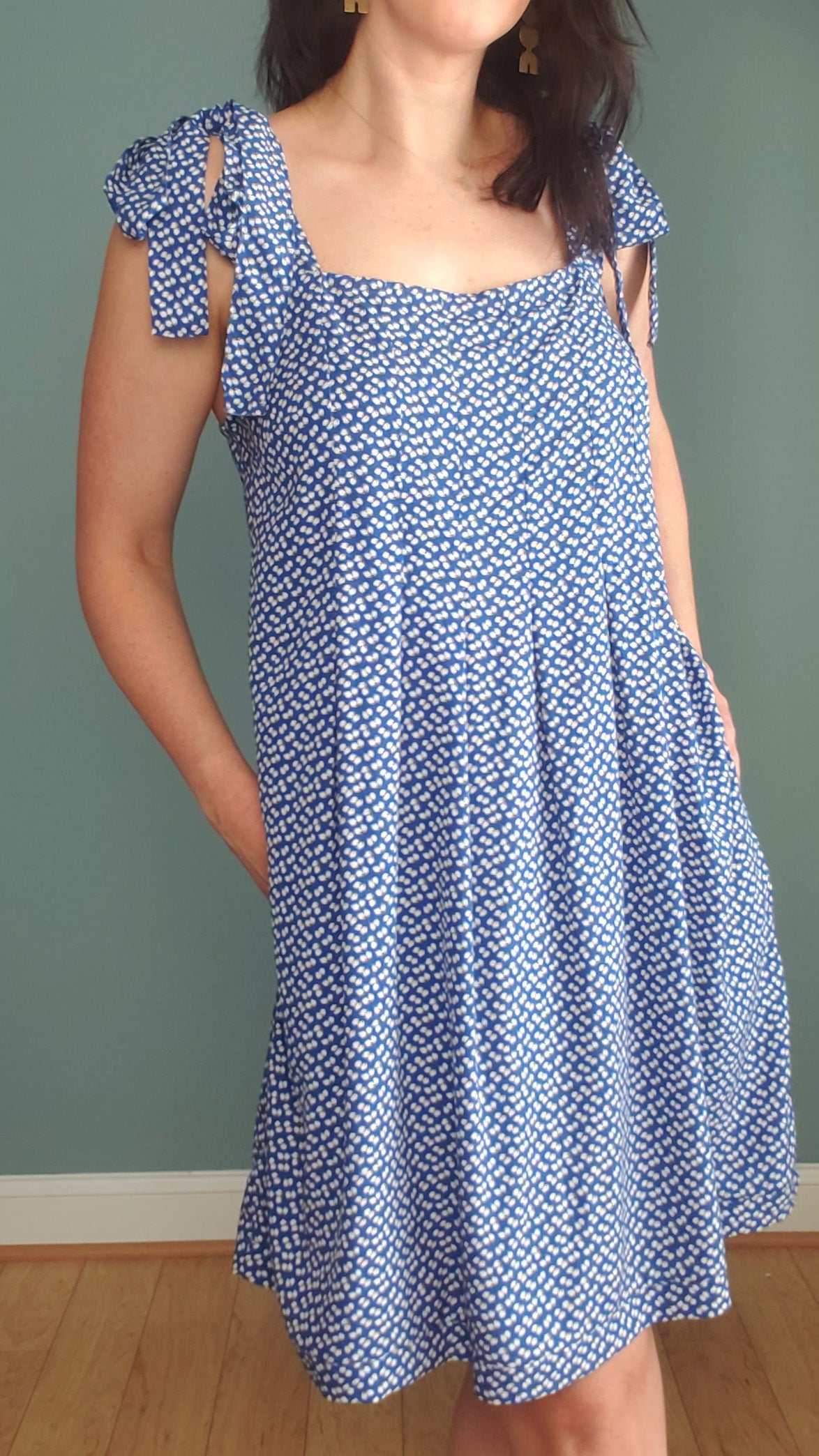 Flora is an easy summer tank or dress with a series of wide tucks across bodice and a flowy skirt. Simple straps tie at the shoulder to customize the neckline fit, with the choice of narrow spaghetti-style straps or wider straps for a more bra-friendly option. Versatile enough to wear as a casual day-dress, date-night outfit, or swimsuit cover-up, Flora will be your go-to summer frock.