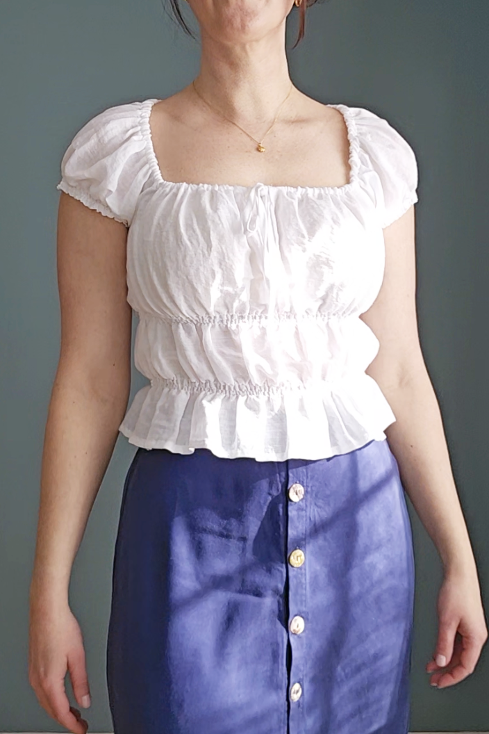 VERSION A is a blouse (hemmed approx. 4 inches (10 cm) below the natural waist)