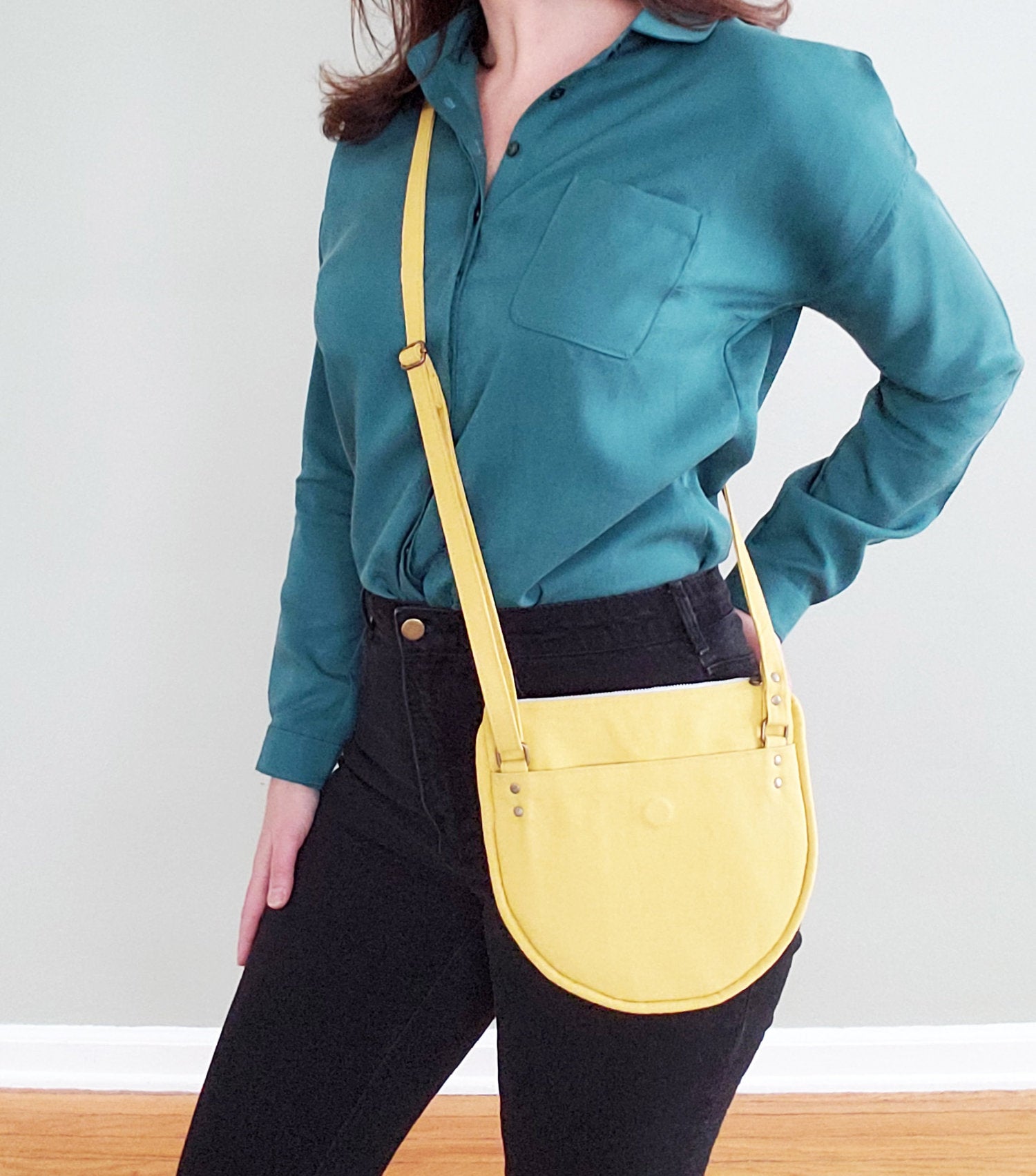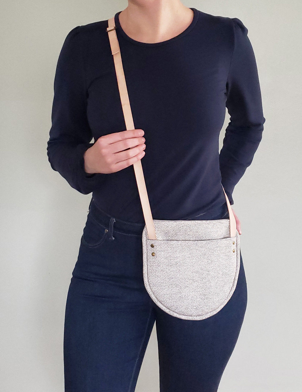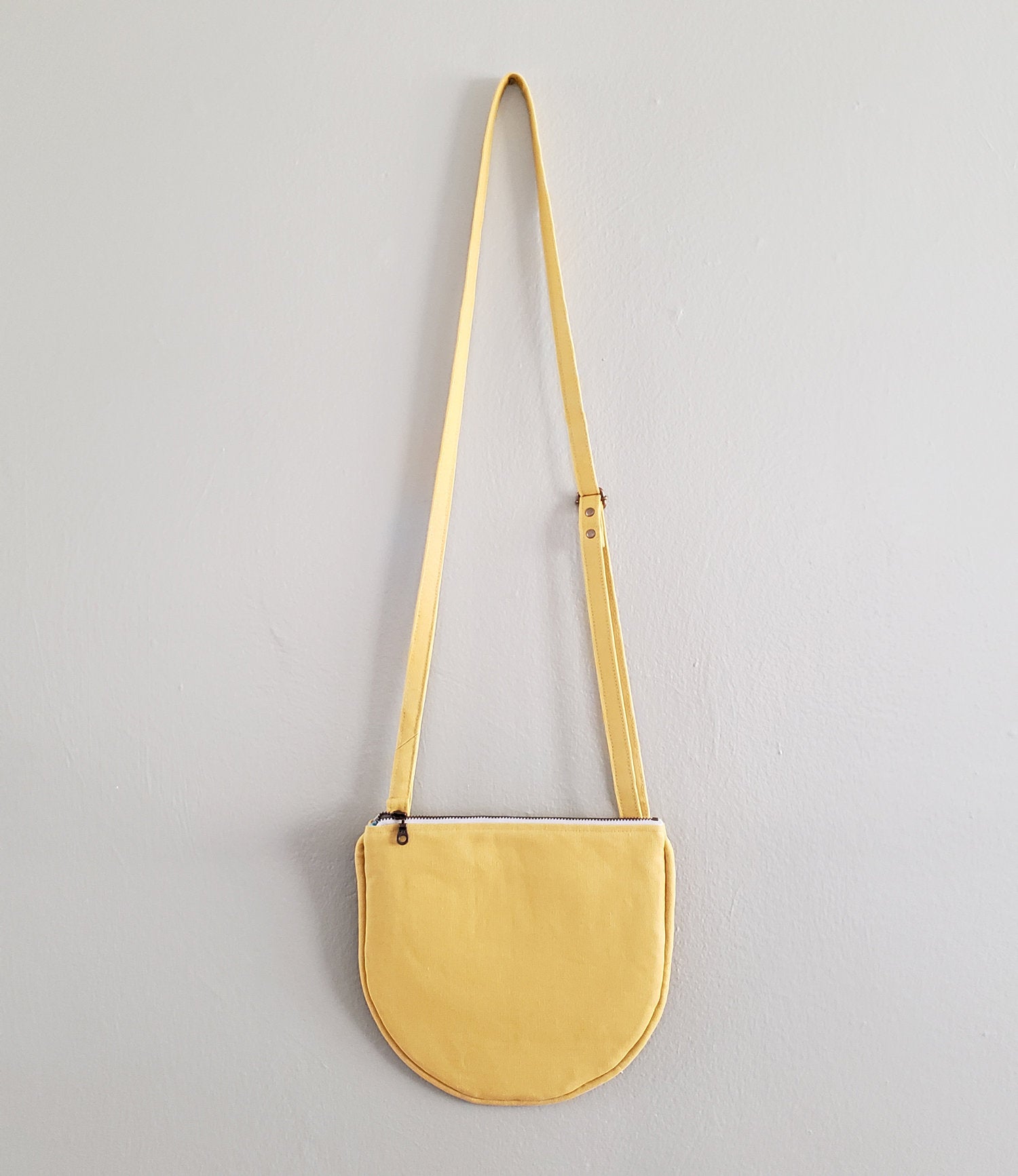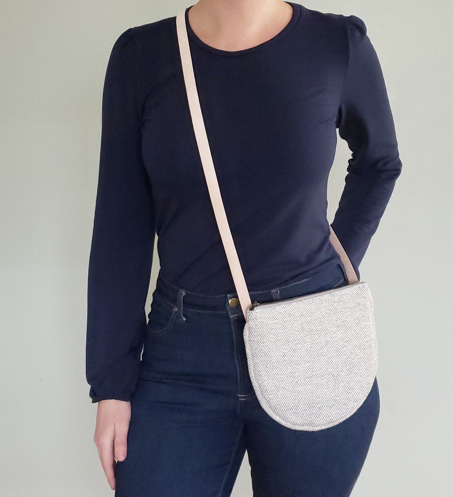 Approximate finished dimensions: 9½” wide x 8½” tall x ½” thick; ⅝” wide strap with adjustable length between 24”-32” shoulder drop. (24 x 21.5 x 1.25cm, 1.5cm strap width, 60-80cm shoulder drop)
