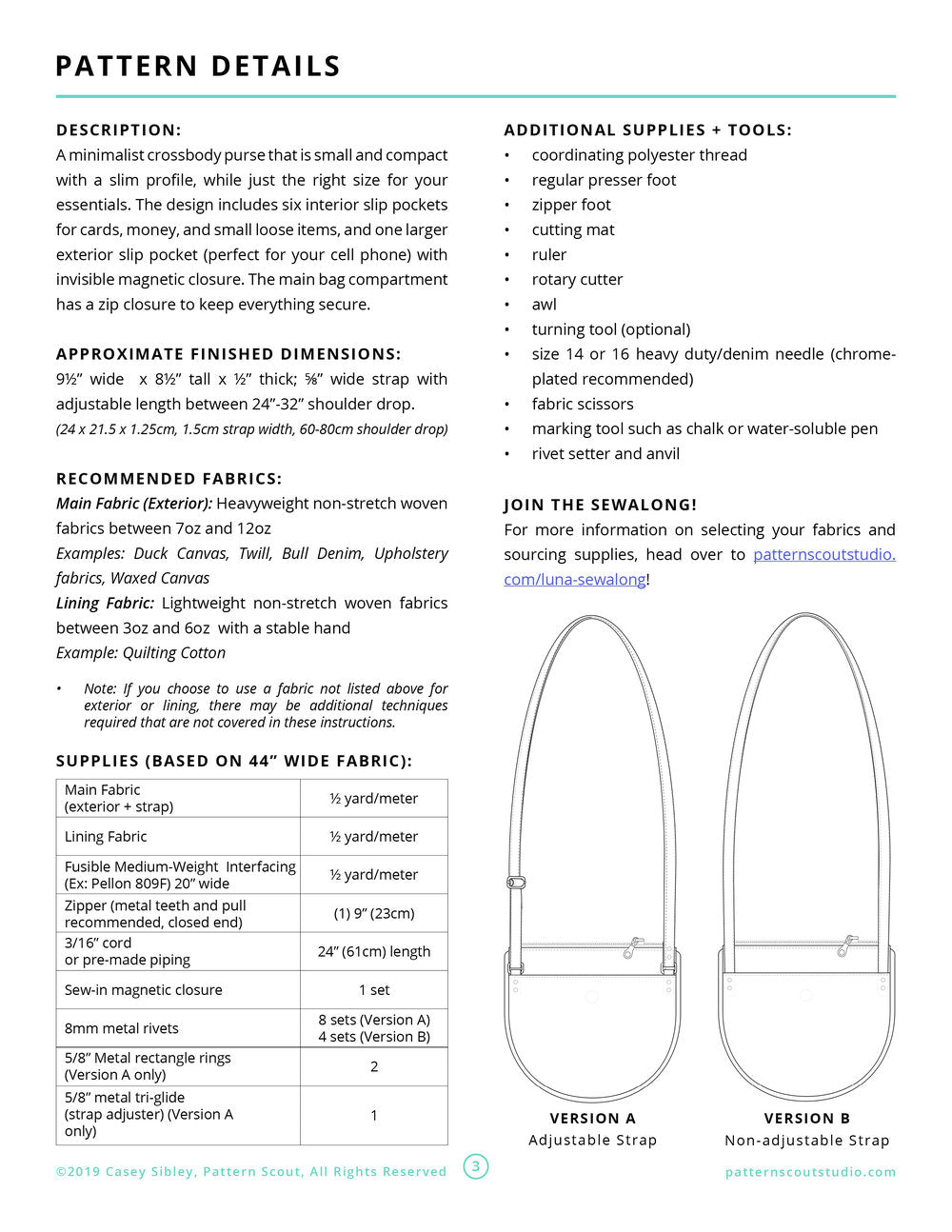 Note: If you choose to use a fabric not listed above for exterior or lining, there may be additional techniques required that are not covered in these instructions.